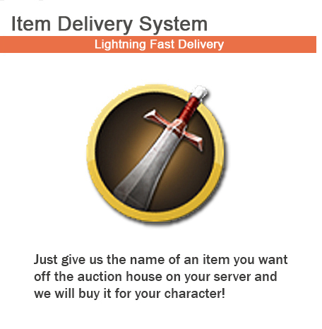 "Our item delivery system is simple and fast. We instantly purchase the item for you and our automated delivery system will trade it with your character ingame when you are ready."